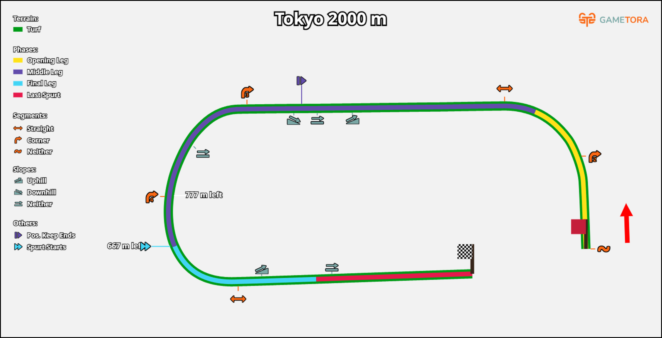 Ces recommandations ont pour but de vous aider à faire des entrainements spécialisés, afin d'obtenir des builds dédiées à la course du CM, et qui tirent le meilleur parti de ses spécificités. En PvP compétitif, la course et son agencement sont connus, donc vous pouvez sélectionner vos uma et vos skills avec précision, afin de faire pencher la balance en votre faveur. Ces recommandations sont des tas de petites optimisations, et c'est à vous de voir quelles optimisations vous décidez de prendre en compte : chaque optimisation vous prends du temps, de l'attention et de l'énergie, et votre santé mentale a plus d'importance que Umamusume 😌.